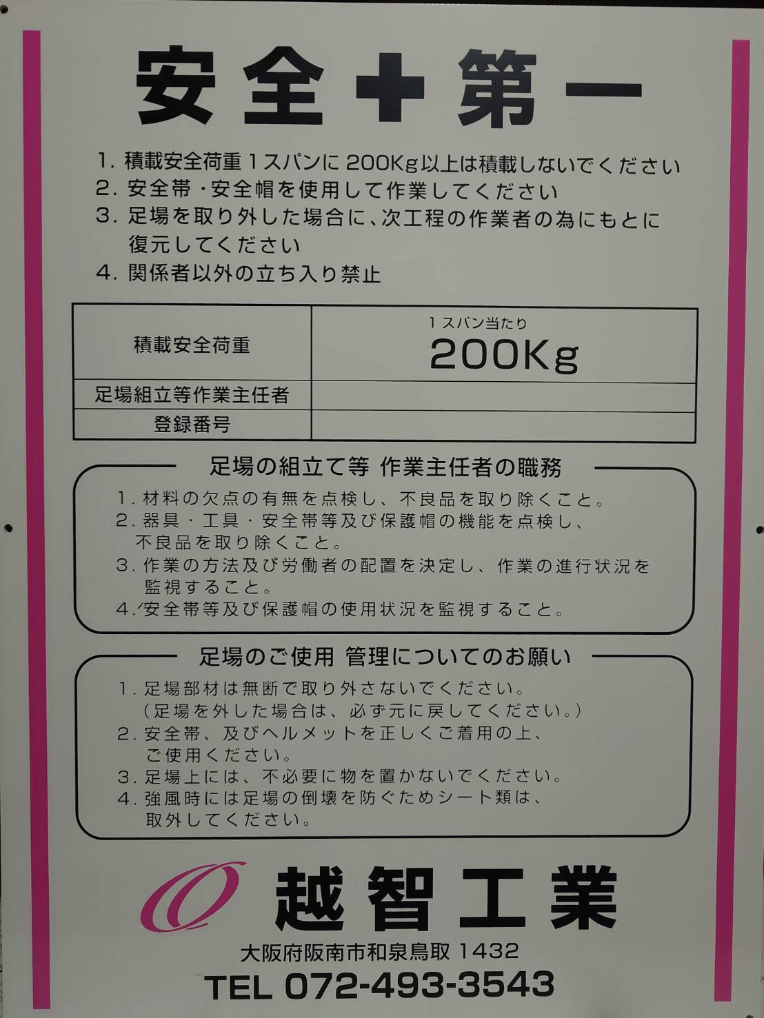 この度は、越智工業のホームページをご覧いただき誠にありがとうございます。私たちは、大阪の阪南市を拠点に、新築およびリノベーション工事における足場作業を専門とする会社です。20年以上にわたる経験を活かし、安全かつ高品質なサービスを提供し、お客様の満足を最優先に考えております。お客様のニーズに応じた最適な足場設置を行い、安心して工事を進めていただける環境づくりに努めています。今後とも、越智工業をどうぞよろしくお願い申し上げます。